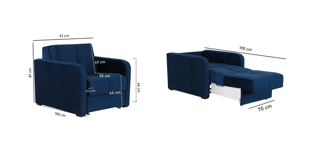 Yüksek kaliteli malzemeleri, hem oturumda hem de yatış pozisyonunda maksimum rahatlık sunar. Kullanıcı dostu mekanizması sayesinde tek hareketle yatak pozisyonuna geçiş yapmak mümkündür.