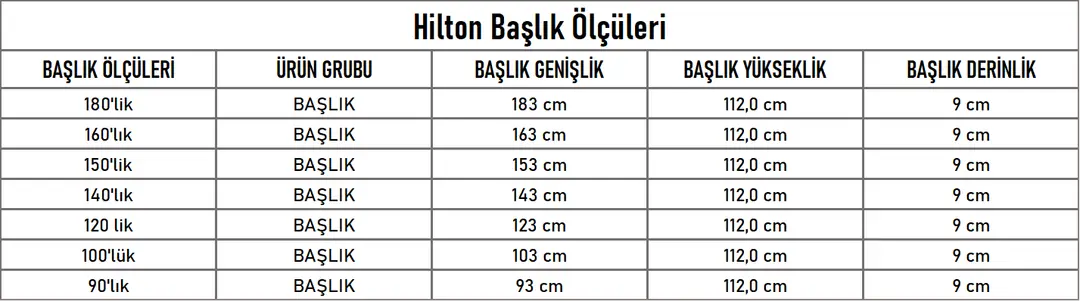 Hilton yatak başlığı, sünger ve yumuşak dokulu birinci sınıf silinebilir döşeme kumaşı ile kaplanmıştır.